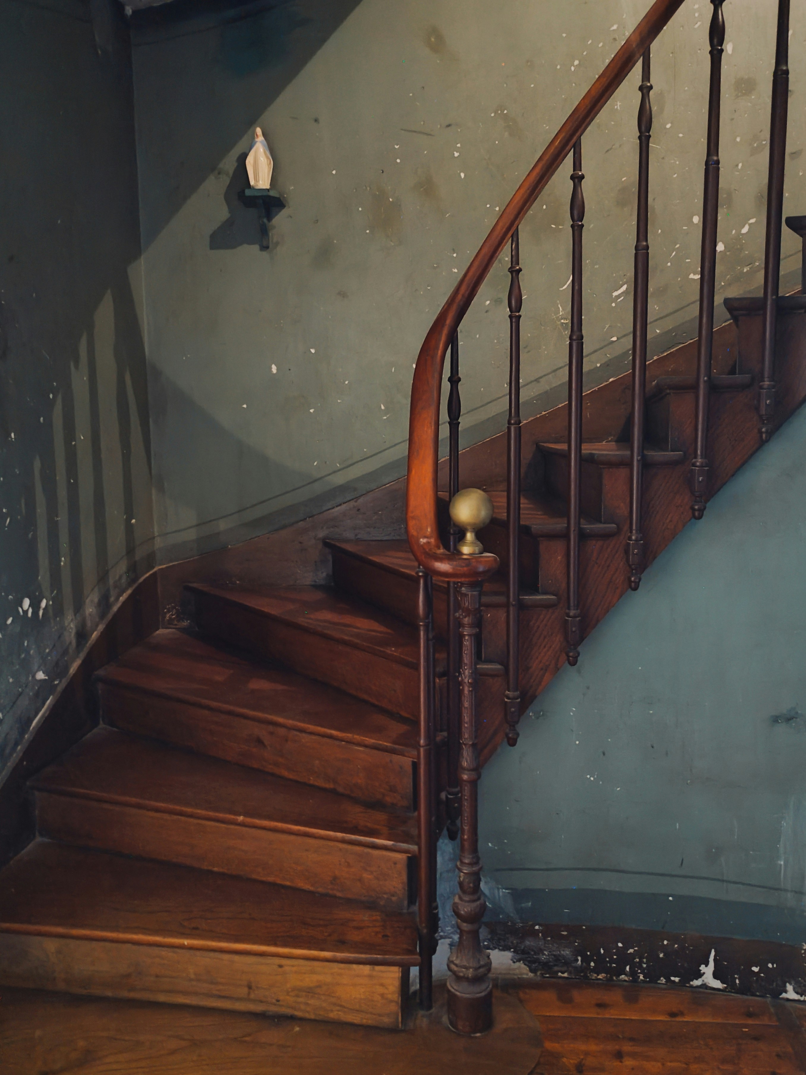 Pluck. Pluck. Pluck. The ancient staples come out, one by one. A tiny plume of dust puffs into the air with the tug of every carpet clump. Some steps have long, thin strands of carpet still in the corners. The bits of stringy plastic backing holding the strips together emerge from the fluffy pile like house centipede legs. Bits of dried drywall mud, plaster, and globs of paint from who-knows-how-many wall repaintings coat the wood. Occasionally I come across a spot where two staples are right on top of one another, and it’s extra annoying to lever it out. I vacuum up the dust as it accumulates.